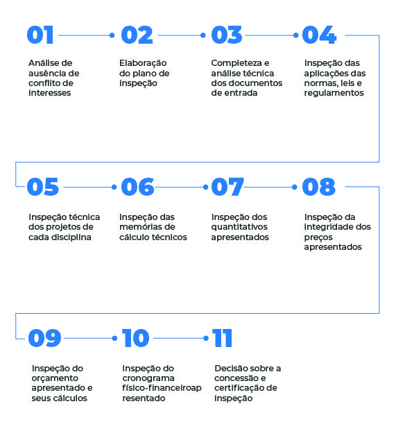 A Inspeção acreditada de empreendimentos de infraestrutura é reconhecida pela CGCRE do INMETRO para avaliar a conformidade das etapas de projetos de engenharia, execução de obras, bem como operação e desempenho.
